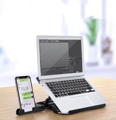 Features: - cooling bracket for notebook - ergonomic design, healthy posture - adjustable height up to 8 levels, from 7cm to 18 cm - 360 degrees rotatable
