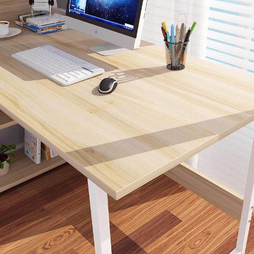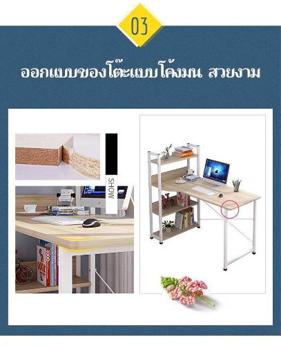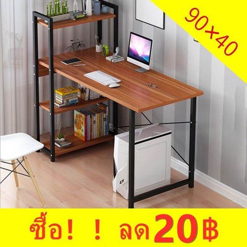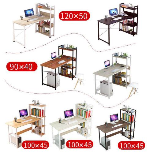 โต๊ะทำงานไม้ โต๊ะคอมพิวเตอร์ พร้อมชั้นวางของ ชั้นวางหนังสือ W100 x L45 x H120cm/120*50 cm ขาเหล็กกล้