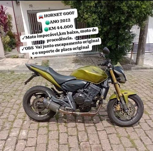 🚘 HORNET 600F 🟢ANO 2012 🟢KM 44.000 ✓Moto impecável,km baixo, moto de procedência. ✓OBS Vai junto escapamento original e o suporte de placa original 👏🏻 ✓ PARCELAMOS NO CARTÃO ATÉ 24 X💰 👉🏽VENDO 👉🏽 TROCO 👉🏽FINANCIO 👉🏽COMPRO 👉🏽 CONSIGNAÇÃO ✓OBS Dividimos por 12, e o comprador paga os meses restante do ano. 📲(11)9559-9579 Fábio 📲(11)93217-7939 Larissa