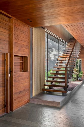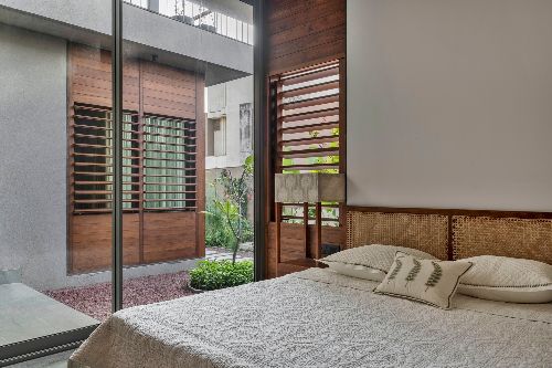 Toạ lạc tại thị xã Gandhinagar (Ấn Độ), The House by the Farm là nơi nương náu yên bình của gia đình có nhiều thế hệ. Với ý tưởng bắt nguồn từ một nơi mọi người kết nối với nhau vào ban ngày và quây quần với trang trại nông nghiệp liền kề, các KTS đã tái tạo không khí thân mật trong không gian cởi mở, sum vầy mà không kém phần tĩnh tại, trang nhã.