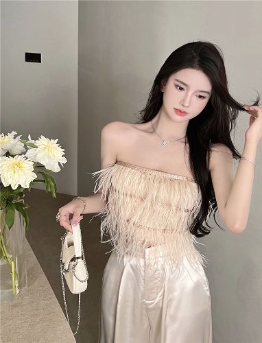 Bộ Đồ Phong Cách Gợi Cảm Mùa Hè HOT GIRL Ống Trên Ngực Áo Sơ Mi Ngắn Bó Sát Tua Rua Quần Dài Ống Rộng Cạp Cao Tôn Dáng