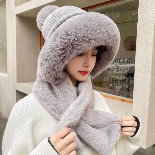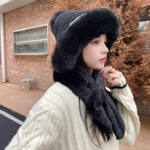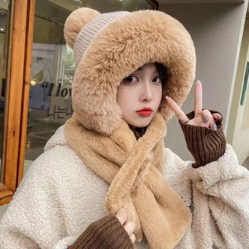 Cả set mũ kèm khăn lông thỏ siêu siêu xinh như này