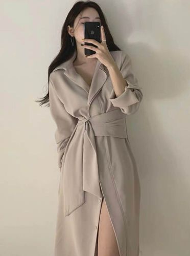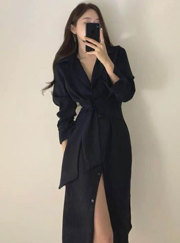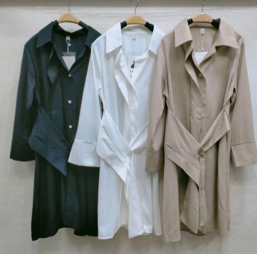 เดรสเชิ้ตแขนยาว กระดุมหน้า มาพร้อมผ้าผูกเอว ผ้าซาตินยืด งานเก๋สุด เป๊ะปังมากค่ะ🎉🎉