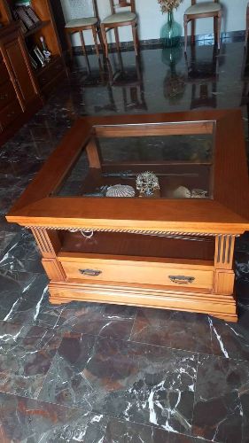 Se venden varios muebles juntos o por separado: - Mesa baja centro 90x90 - Mueble de salón para TV - Zapatero - Conjunto 6 sillas de madera - Arca de madera y forja
